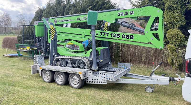 Díky pracovní výšce 22,5 m, bočnímu dosahu 12,2 m a nosnosti koše až 250 kg poskytuje Leguan 225 dostatek výkonu i prostoru pro široké využití. Pásový podvozek zajišťuje výbornou stabilitu a průchodnost terénem, zatímco automatické vyrovnávání usnadňuje bezpečné ustavení plošiny i na nerovném povrchu.